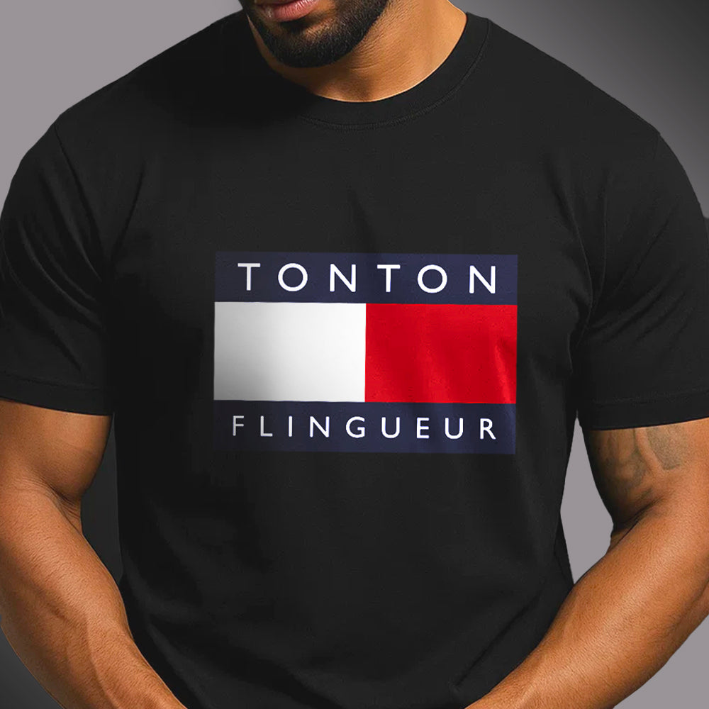 T-shirt Tonton Flingueur, un clin d’œil au charme vintage du cinéma français revisité à la sauce streetwear de luxe. Minimaliste mais percutant, ce design capture l’esprit frondeur et élégant des légendaires “Tontons Flingueurs”. Un style unique pour ceux qui aiment affirmer leur caractère avec subtilité.