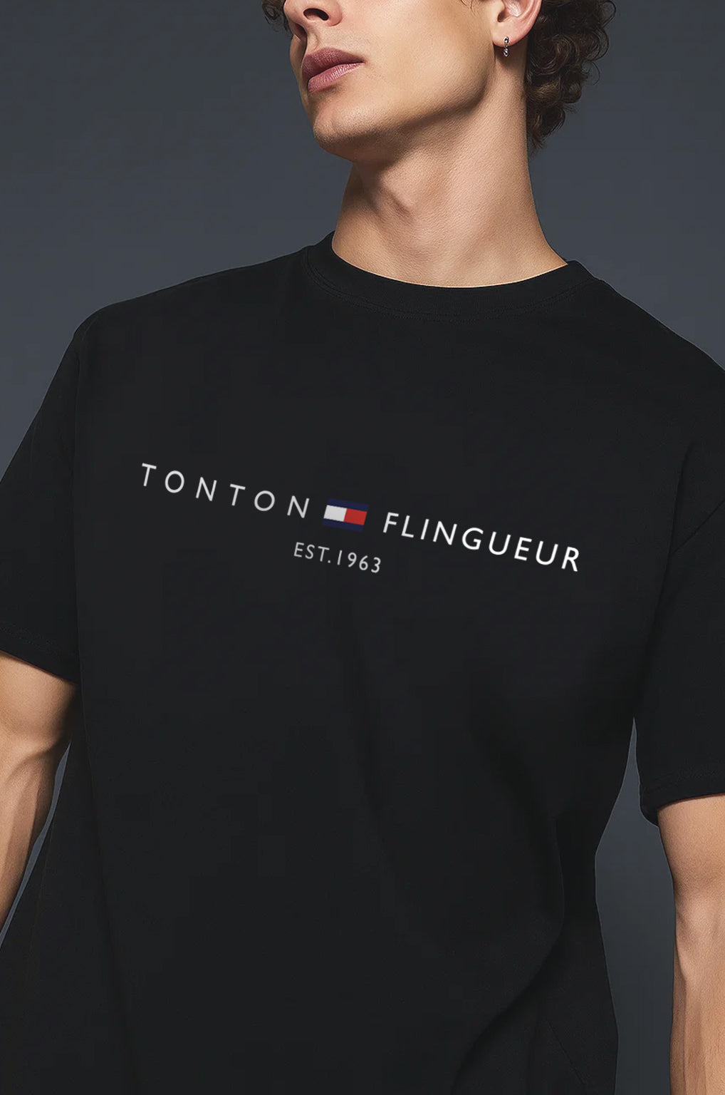T-shirt Tonton Flingueur, un clin d’œil au charme vintage du cinéma français revisité à la sauce streetwear de luxe. Minimaliste mais percutant, ce design capture l’esprit frondeur et élégant des légendaires “Tontons Flingueurs”. Un style unique pour ceux qui aiment affirmer leur caractère avec subtilité.